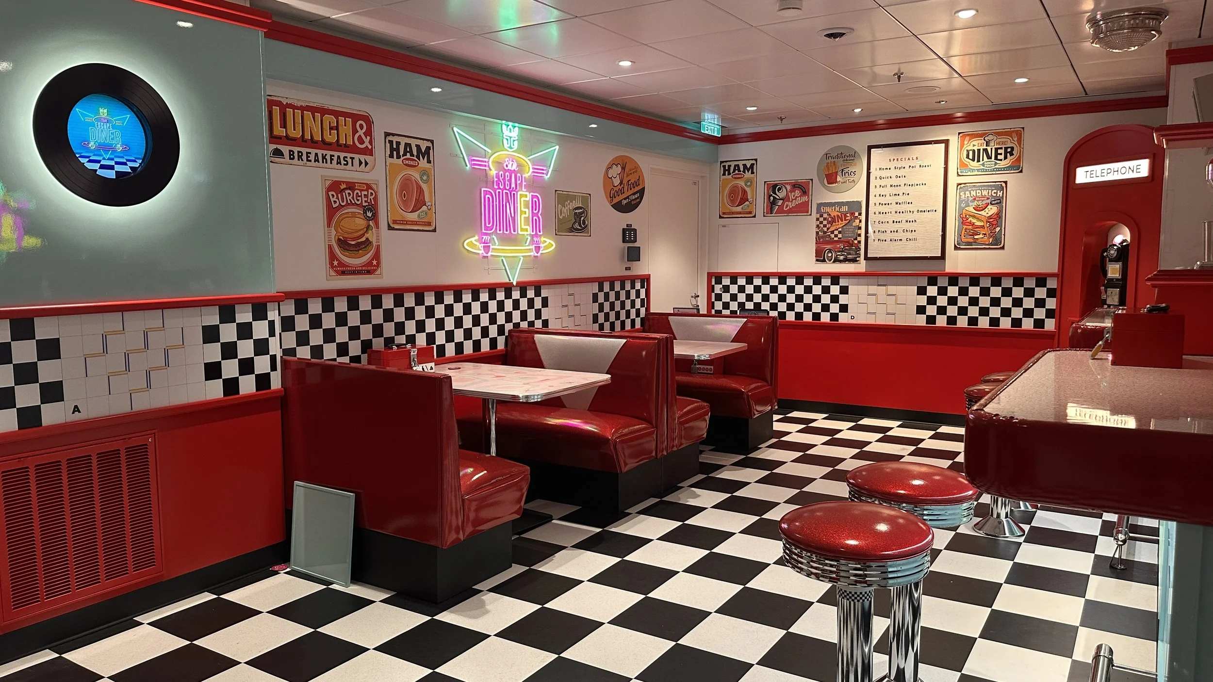 Inspired by retro 1950s diners, vibrant graphics set the tone for this family-friendly, 60-minute puzzle experience on Royal Caribbean’s Star of the Seas.